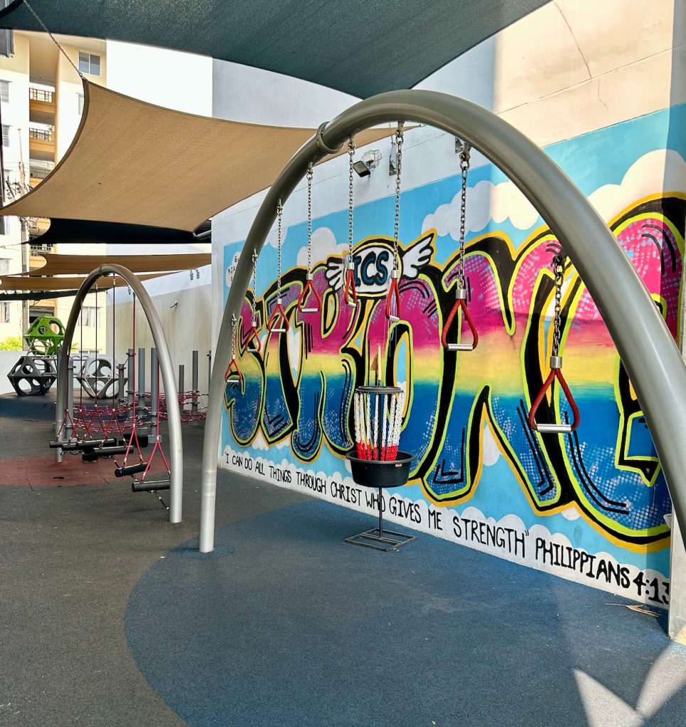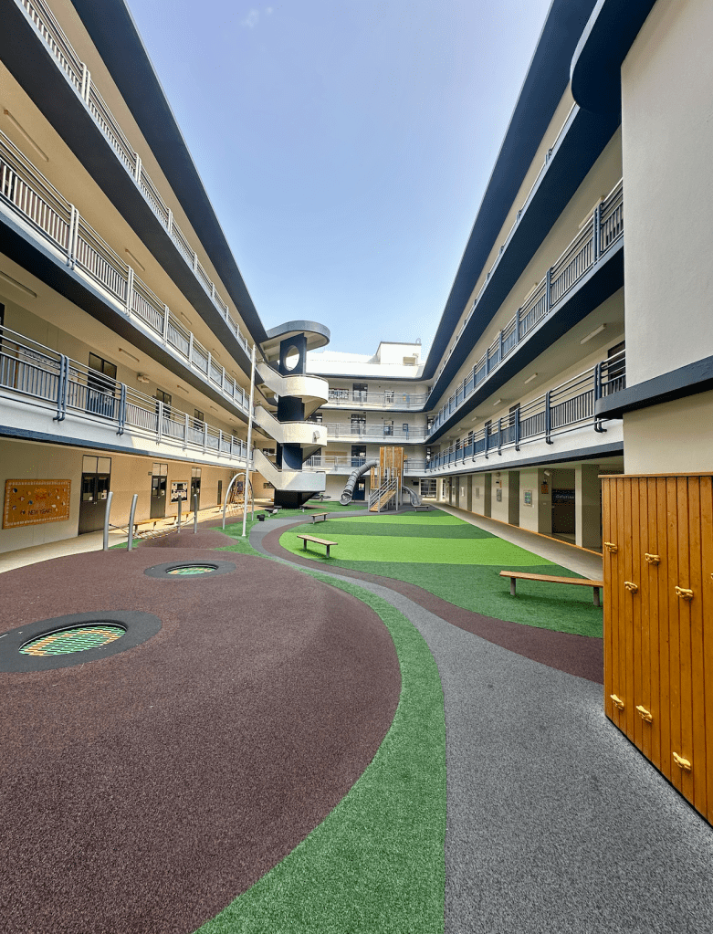 ICS is an oasis in the hustle & bustle, noise, and humidity that is Bangkok, Thailand. ICS boasts beautiful facilities for students, shaded playgrounds for after school play, and ample seating for community connections. Like Jeff Henderson would say, ICS is FOR the child!! The campus looks noticeably different since I last visited ICS in October, 2019. Some improvements include: upgraded branding, beautiful murals painted by students, plaques which showcase graduating award winners, modernized secondary building courtyard space, new gym for elementary physical education, and 4, count ‘em, 4 new playgrounds.